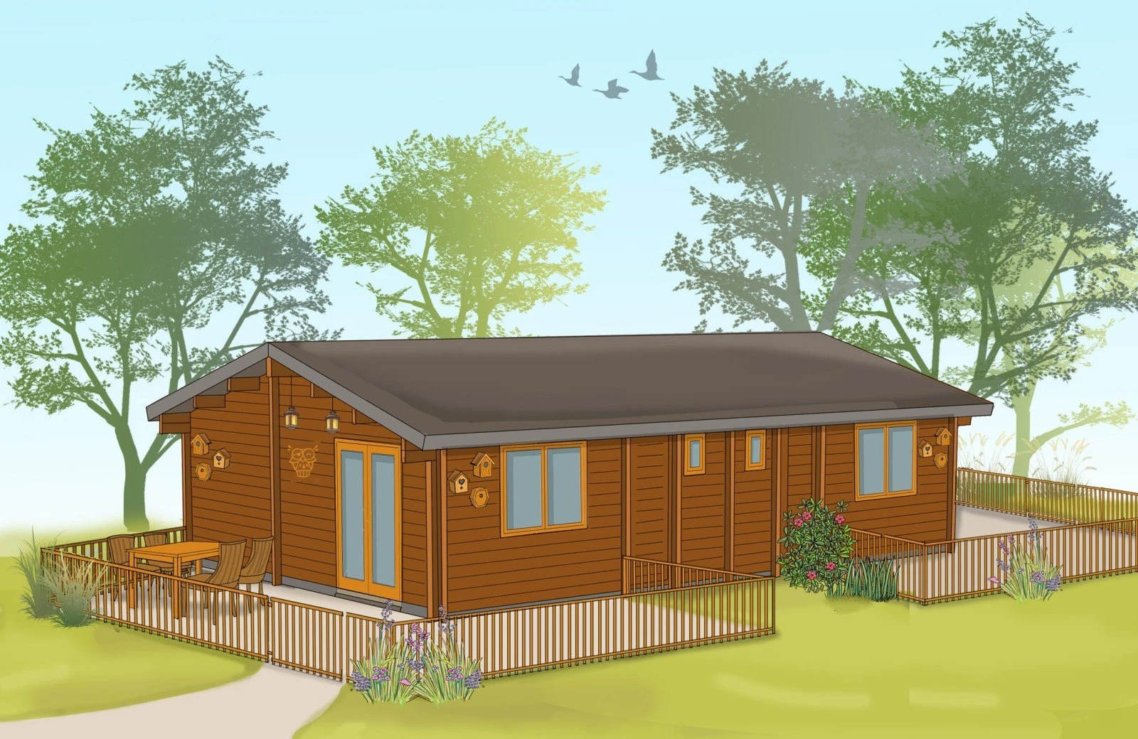 Die Lodge ist im fröhlichen, vertrauten Stil von Woezel & Pip eingerichtet. Sie verfügt über ein schönes Wohnzimmer mit voll ausgestatteter Küche sowie eine gemütliche Ess- und Sitzecke. Darüber hinaus gibt es zwei komfortable Schlafzimmer, in denen Sie sich gut ausruhen können. Alle Zimmer sind mit Swiss Sense-Betten ausgestattet. Jede Unterkunft verfügt außerdem über ein Badezimmer mit Dusche und Toilette. Möchten Sie die grüne Umgebung und die frische Luft besonders lange genießen? Dann ist die umzäunte Terrasse der ideale Ort, um noch ein wenig zu plaudern, zu essen oder zu spielen.