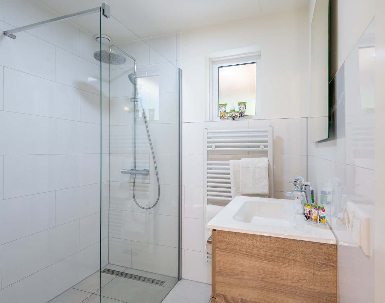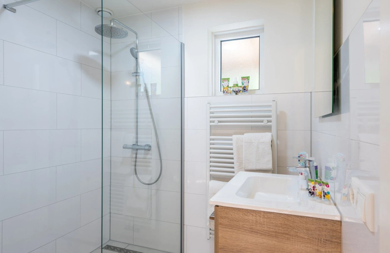 In der Villa werden Sie sich sofort wie zu Hause fühlen! Im Erdgeschoss erwarten Sie ein Wohnzimmer mit Küche, eine gemütliche Ess- und Sitzecke mit Zugang zur umzäunten Terrasse, ein Schlafzimmer, ein Badezimmer und eine separate Toilette. Im ersten Stock befinden sich drei weitere Schlafzimmer, ein Badezimmer, ein separates WC und eine Sauna! In diesem luxuriös ausgestatteten Haus mit Betten von Swiss Sense genießen Sie einen herrlichen Familienurlaub im Stil von Woezel & Pip.
